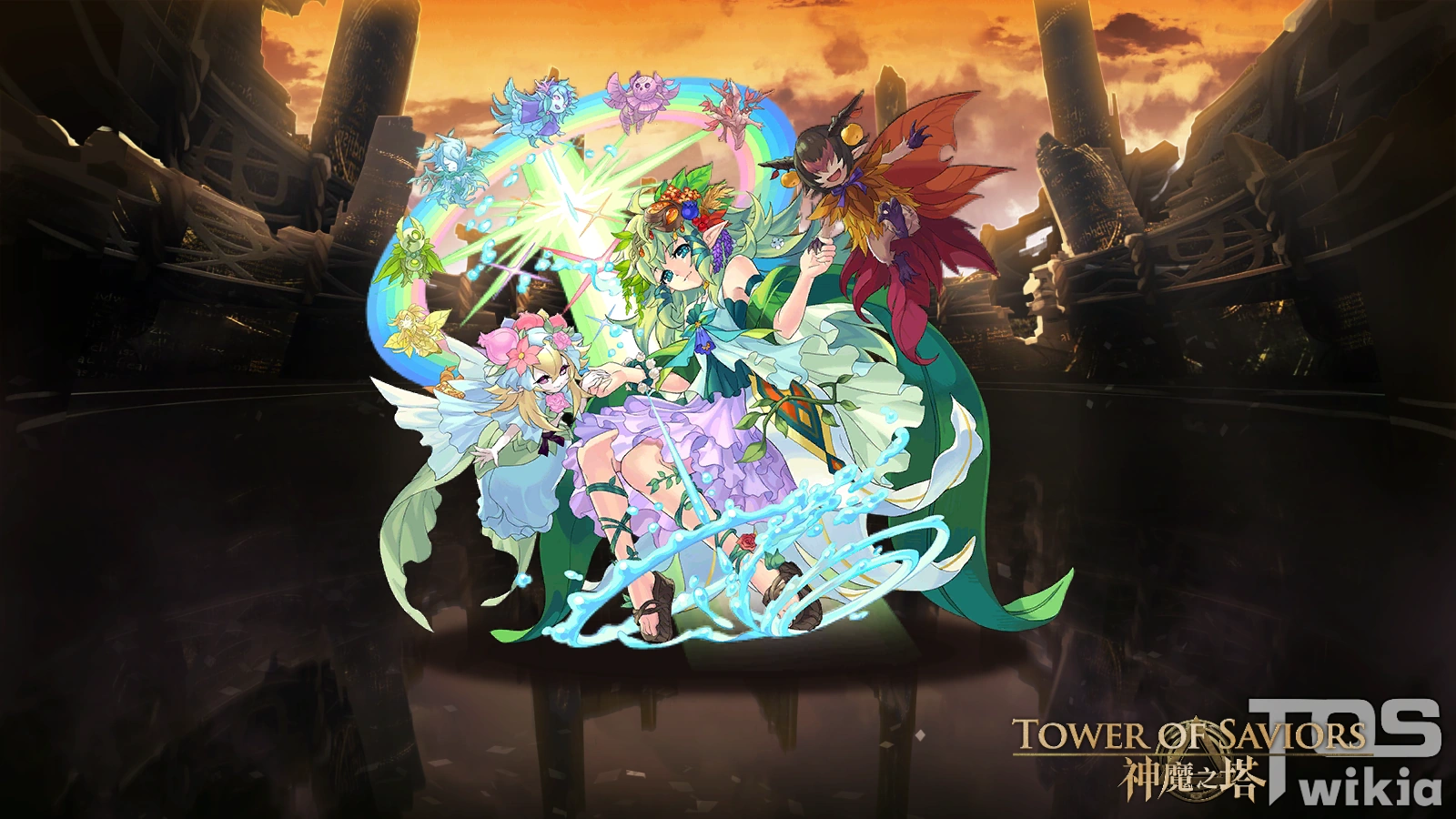 世界樹的恩惠 I.【怪物彈珠】及妖精類成員攻擊力 6 倍 II. 延長移動符石時間 2 秒 III. 敵方所受攻擊傷害的 100% ⇒ 分別擴散到其他敵人身上 | |||||||||